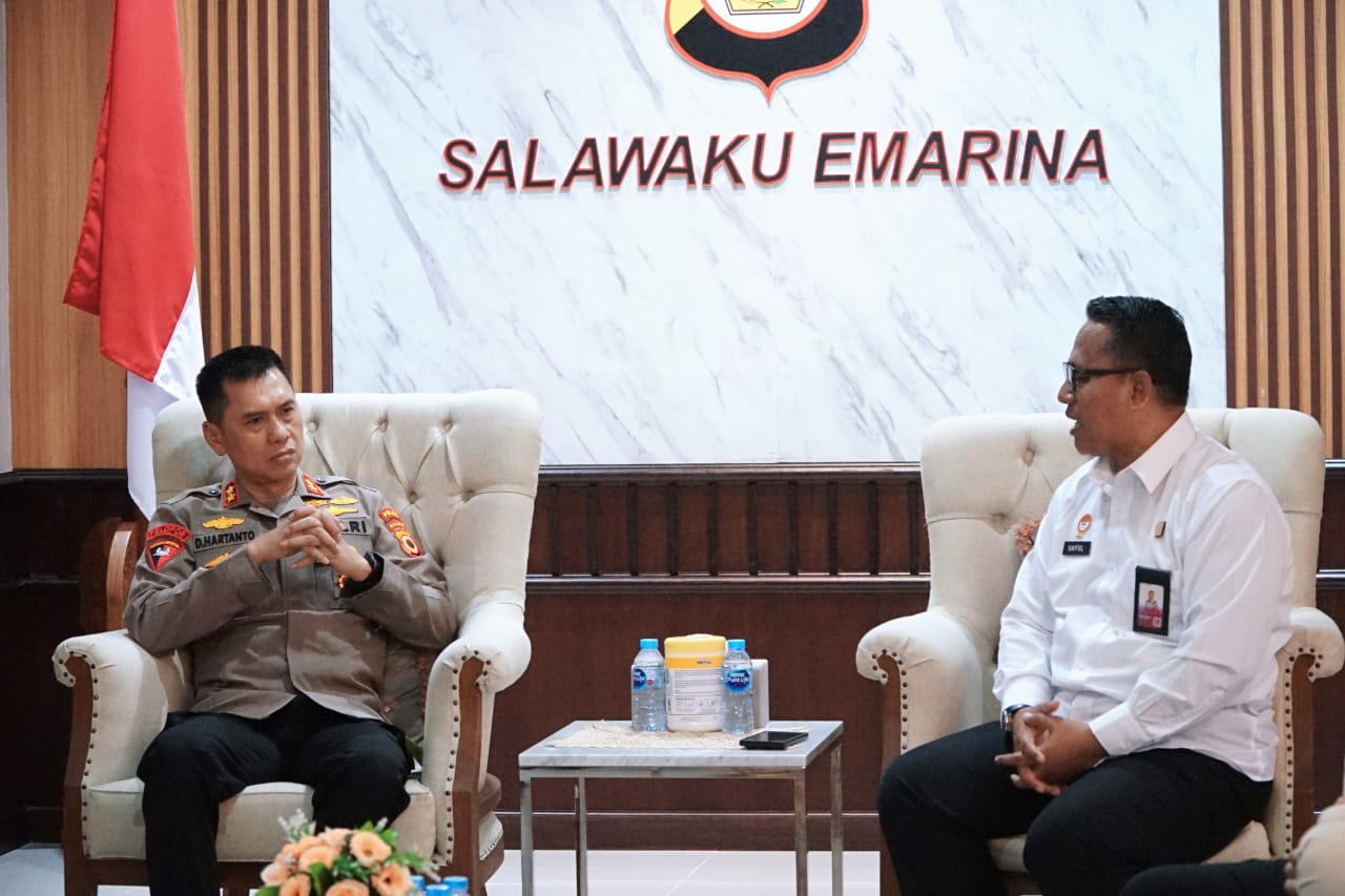TERASMALUKU.COM,-AMBON-Kepala Kantor Wilayah Kementerian Hukum (Kemenkum) Maluku, Saiful Sahri, menemui Kapolda Maluku, Irjen Pol. Prof. Dr. Dadang Hartanto, S.H., S.I.K., M.Si. dalam rangka memperkuat sinergi antara dua institusi penegak hukum guna peningkatan layanan hukum dan penanganan konflik sosial di wilayah Maluku, (8/10/2025).