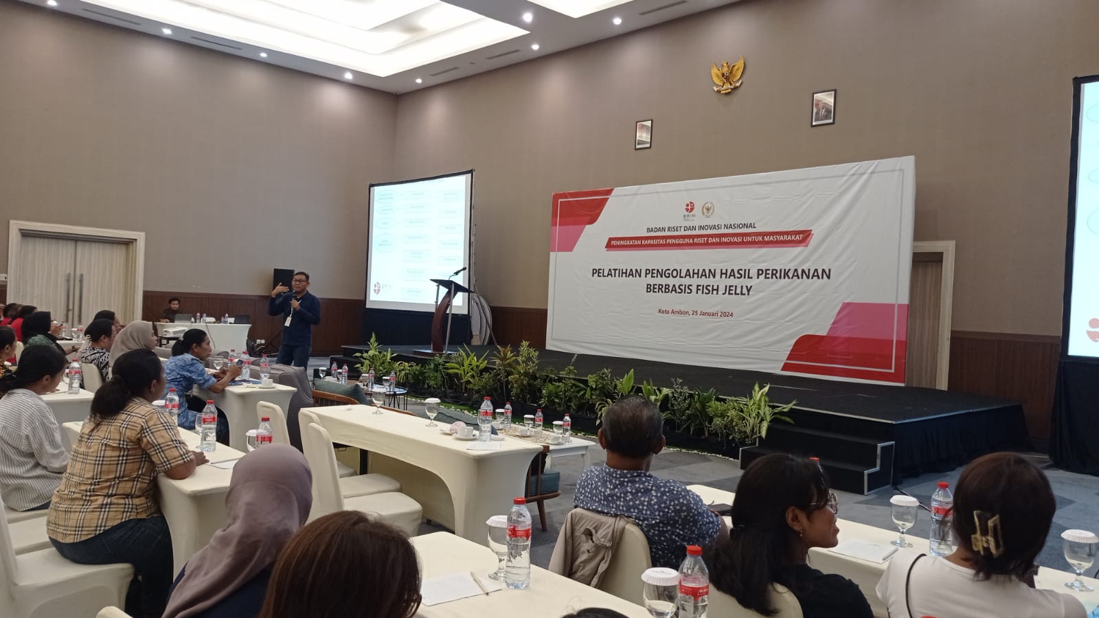 “Kami lihat peluang besar. Kami mau buat terobosan pengolahan tepung ikan jadi pakan ternak. Di daerah lain Manado Makassar mereka itu penghasil tepung ikan lho, masa Maluku kalah,” katanya dihadapan 200 peserta pelatihan pelatihan pengolahan hasil perikanan berbasis fish jelly yang digelar Badan Riset dan Inovasi Nasional (BRIN) Maluku di Santika Premier Hotel, Kamis siang (25/1/2024).