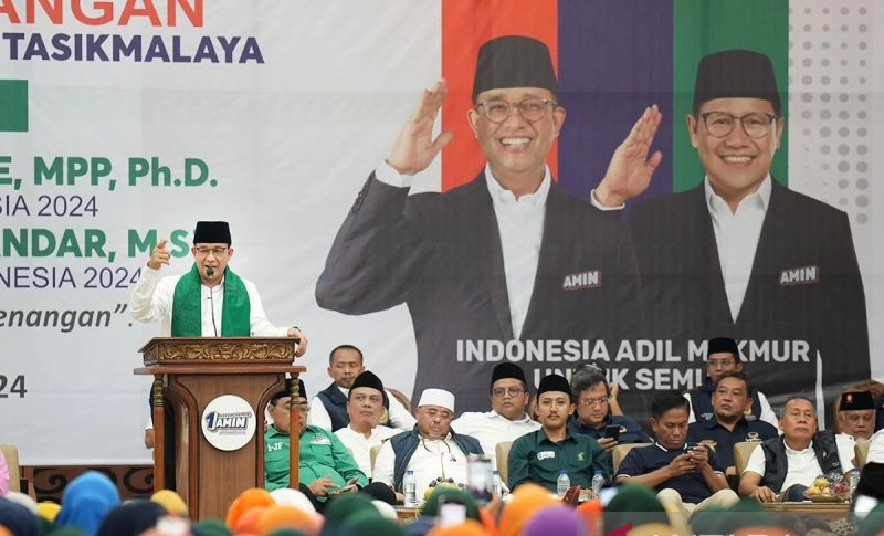 Calon Presiden RI Anies Baswedan saat silaturahmi dengan para ulama di Tasikmalaya, Jawa Barat, Kamis (4/1/2024). ANTARA/HO-Timnas AMIN