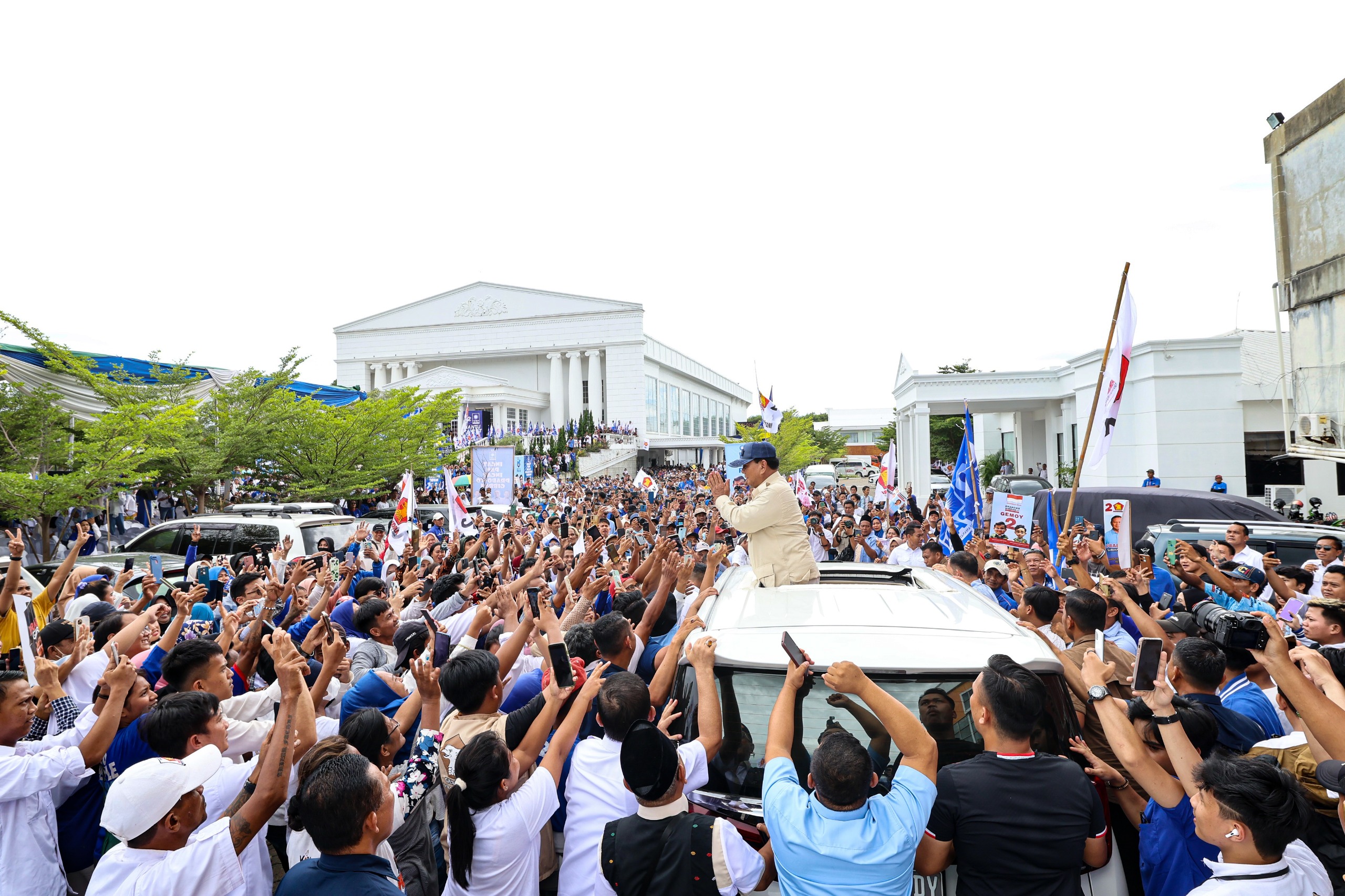 Adapun dalam sepekan terakhir, Prabowo bertemu dengan masyarakat di tiga kota sekaligus dalam satu hari, yaitu Pekanbaru, Riau; Jambi, Provinsi Jambi; serta kota Palembang, Provinsi Sumatera Selatan; pada 9 Januari 2024.