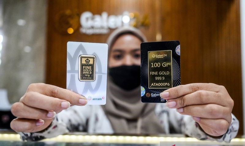 Pada Jumat pagi, harga emas Antam menurun Rp20.000 dari Rp1.345.000 per gram menjadi Rp1.325.000 per gram.