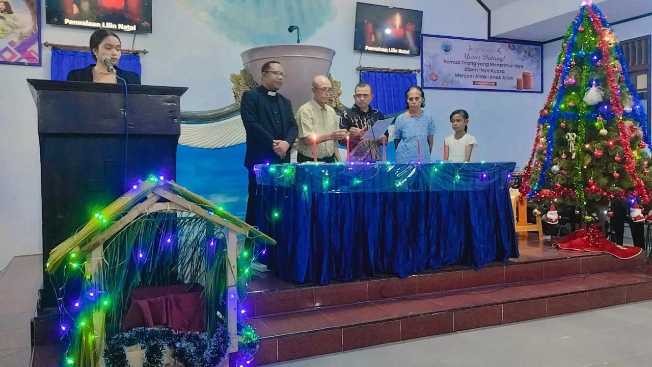 Ibadah Natal dilayani oleh Pdt Rudy Rahabeat wakil Sekum Sinode GPM dengan liturgos Grace Mariwy dan Ulis Amtu.
