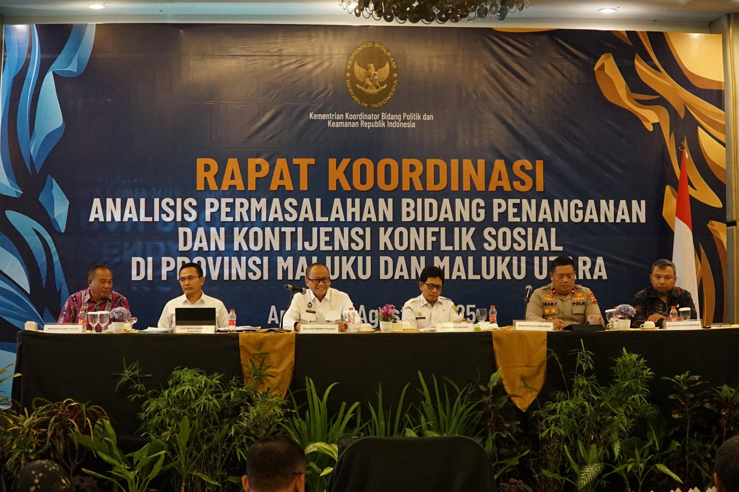 TERASMALUKU.COM,-AMBON-Sekretaris Daerah (Sekda) Provinsi Maluku, Sadali Ie memaparkan strategi penanganan konflik sosial di wilayah Maluku dalam Rapat Koordinasi (Rakor) analisis permasalahan bidang penanganan dan kontijensi konflik sosial di Maluku-Maluku Utara