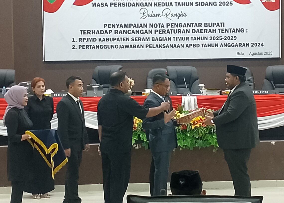 TERASMALUKU.COM,-BULA-Wakil Bupati Seram Bagian Timur (SBT) Maluku, Muhammad Miftah Thoha R Wattimena, sampaikan nota pengantar pertanggungjawaban pelaksanaan Anggaran Pendapatan Belanja Daerah (APBD) tahun anggaran 2024.